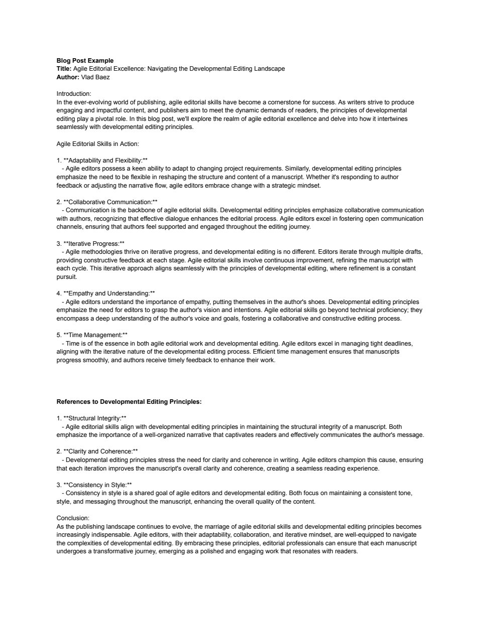 Copywriting example in the form of a blog post centered on Developmental editing.