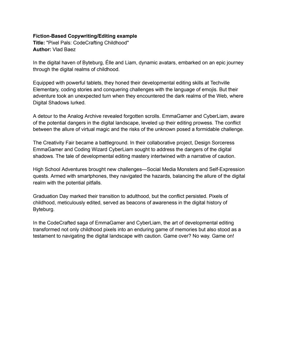 A brief example of “Gamified” storytelling, copywriting, and editing.